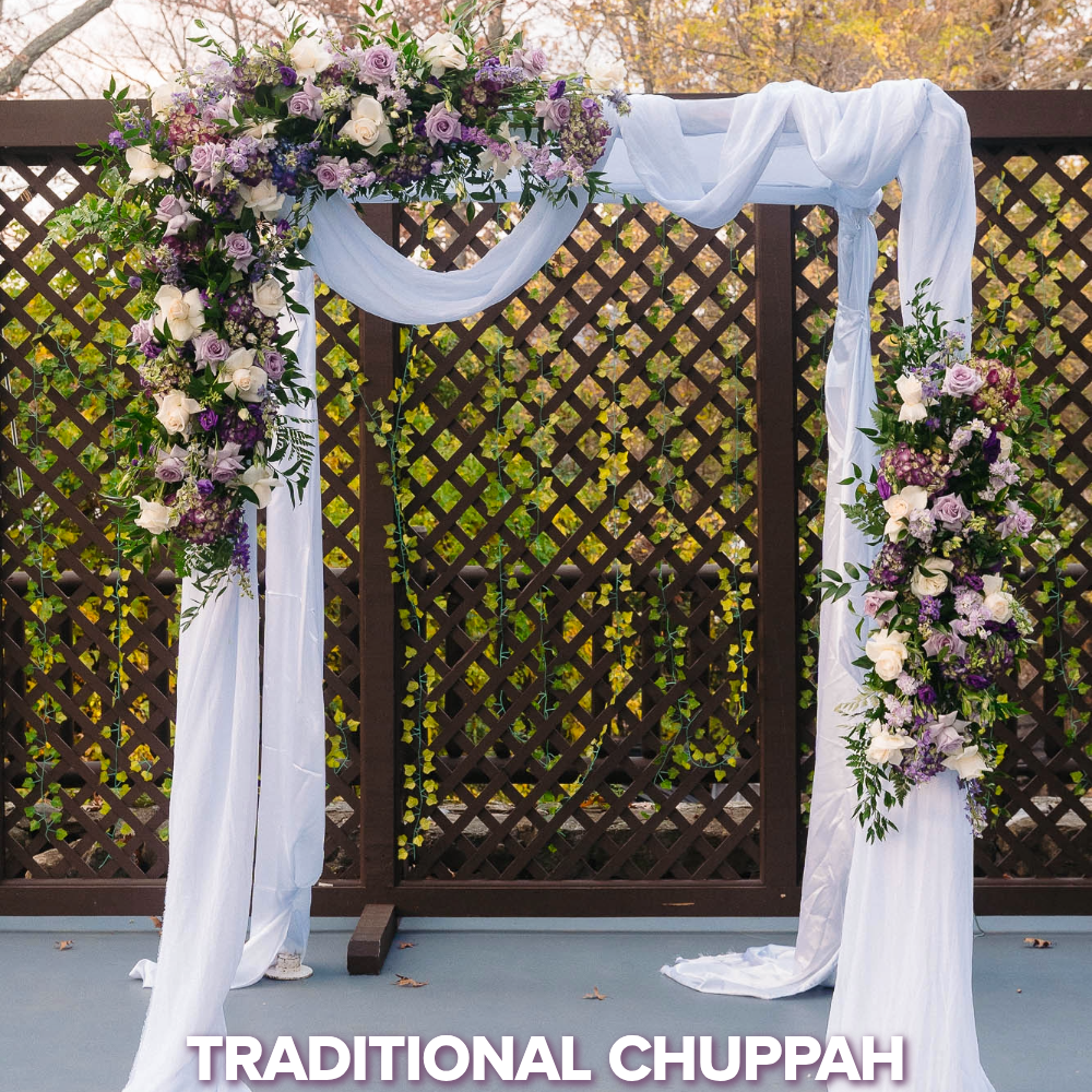 Decorating your chuppah with flowers enhances your ceremony photos, ties together your overall wedding color palette, and adds natural beauty to this meaningful space. A floral chuppah creates a timeless look that complements any style, from classic to garden-inspired, while honoring the tradition of standing beneath a beautifully adorned canopy.