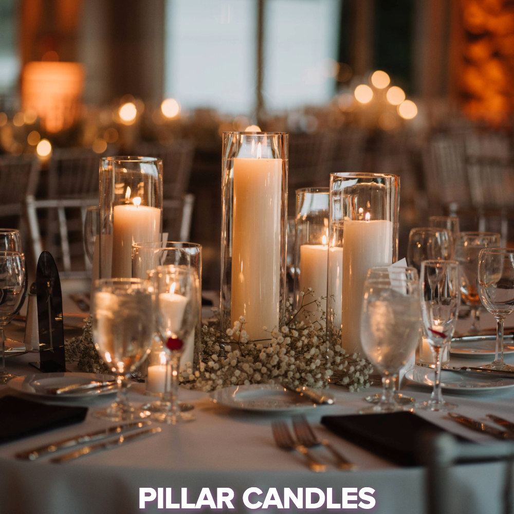 Imagine a low centerpiece with glass cylinder candles tucked into the middle — these candle centerpieces for weddings make your reception feel cozy, elegant, and picture-perfect.