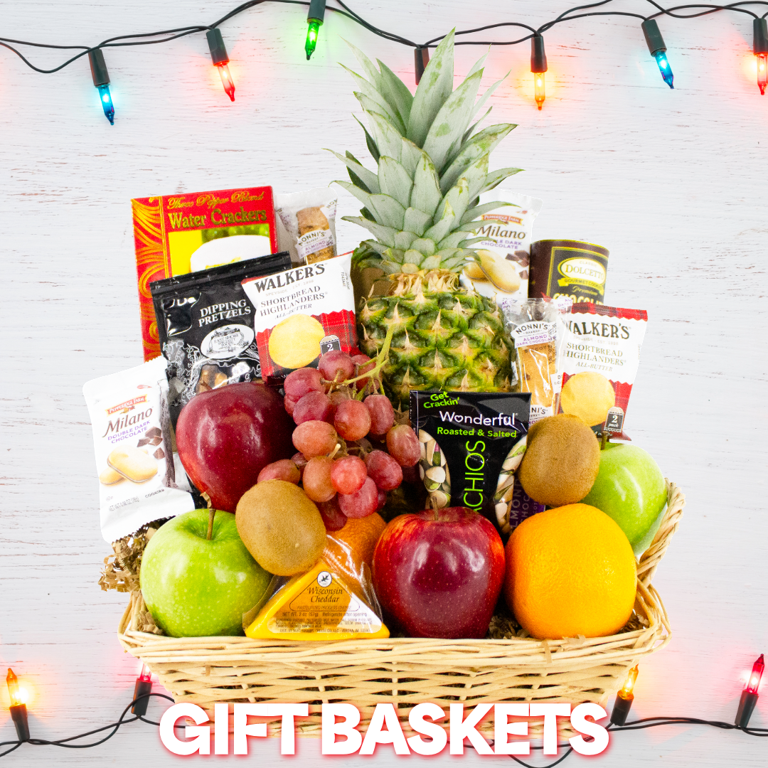 Our fruit and gourmet baskets are an easy choice when you’re not sure what to send. Packed with assorted whole fruits, chocolates, cheeses, and crackers, they make the perfect holiday gift for families, clients, coworkers, and anyone who deserves a seasonal treat.