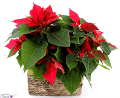 Beaitiful Poinsettia with greens. Poinsettia plants may vary in color.